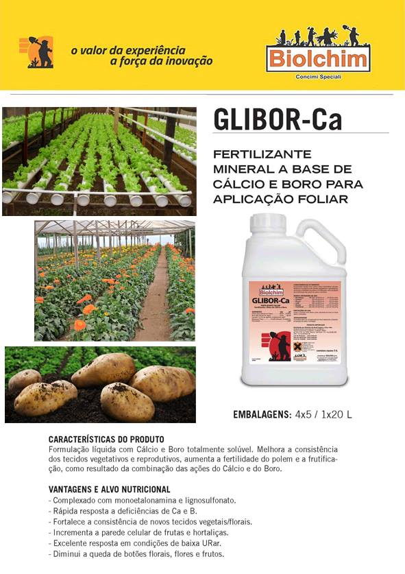 GLIBOR-Ca – Fertilizante mineral a base de Cálcio e Boro para aplicação foliar